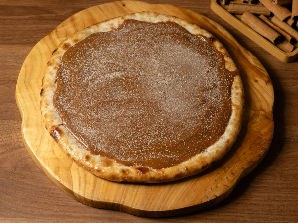Uma clássica irresistível: massa especial de pizza doce, doce de leite NestléⓇ cremoso e o toque final de açúcar e canela